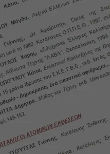 • Θεοχάρους Χαρίκλεια, Κατάλογος Αναδρομικής Έκθεσης, 44α Δημήτρια, Δημοτική Πινακοθήκη, Θεσσαλονίκη, Νοέμβριος, 2009, σελ.10.