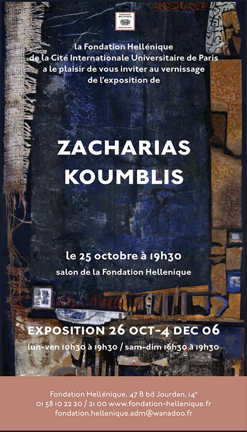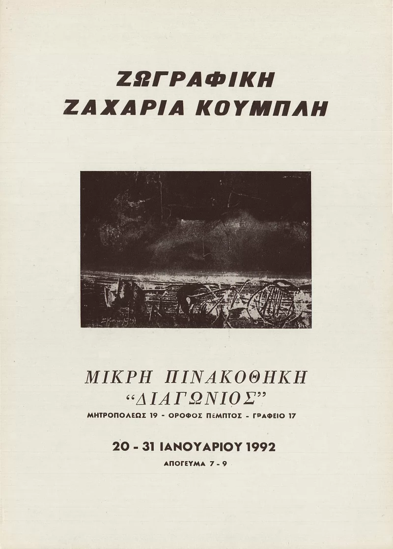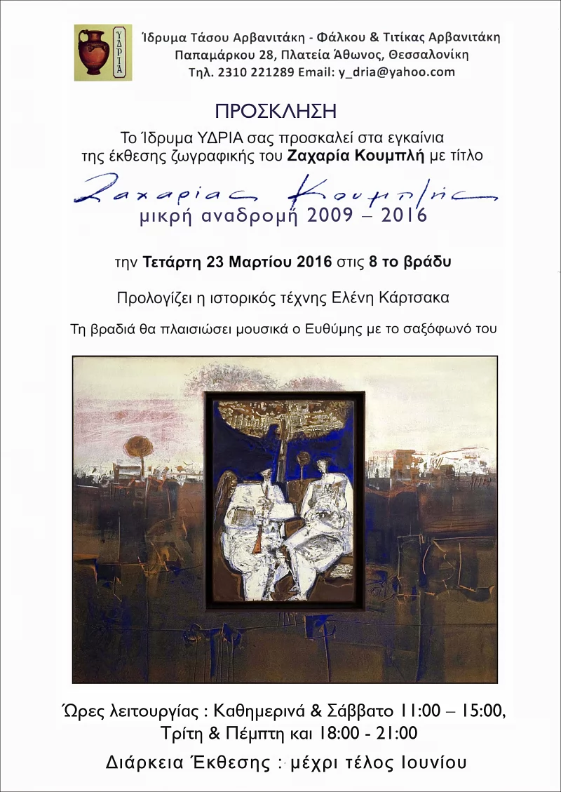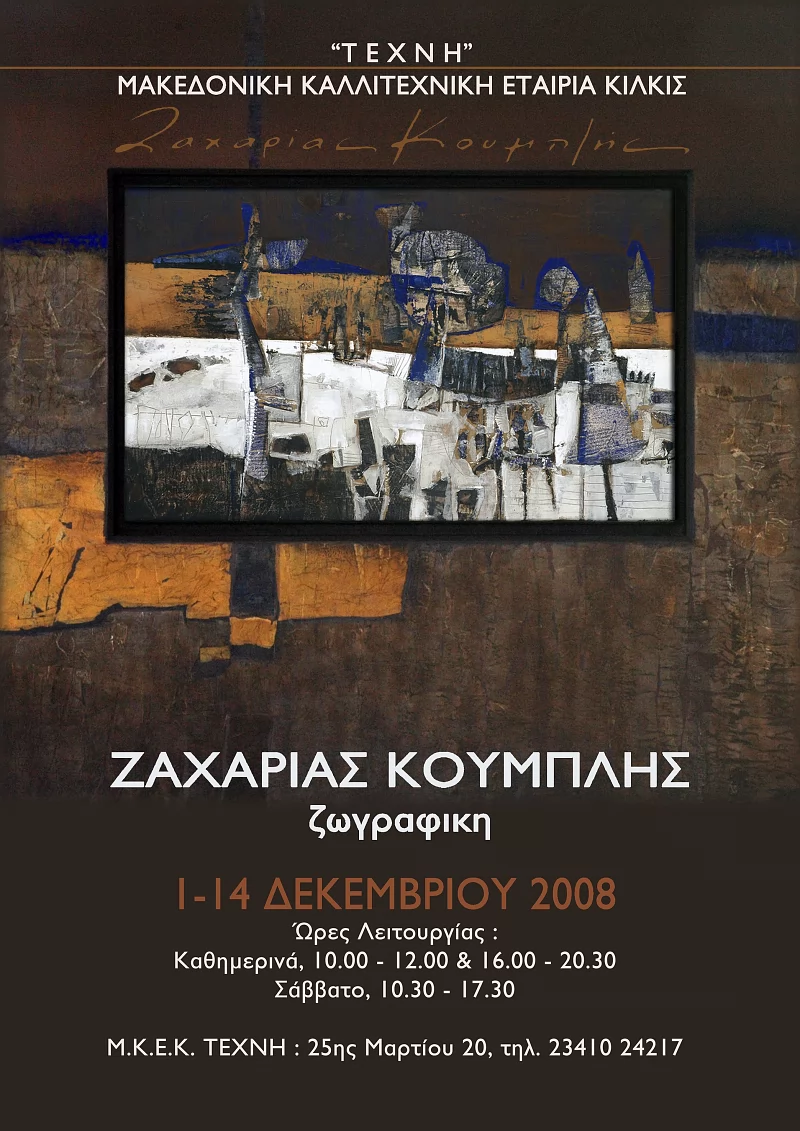• Σαχίνη Αγγελική, «Έρευνες στο έργο του Ζαχαρία Κουμπλή». Κατάλογος Ατομικής Έκθεσης, Παλαιό Αρχαιολογικό Μουσείο (Γενί-Τζαμί), Θεσσαλονίκη, 2001, σελ.8-11.